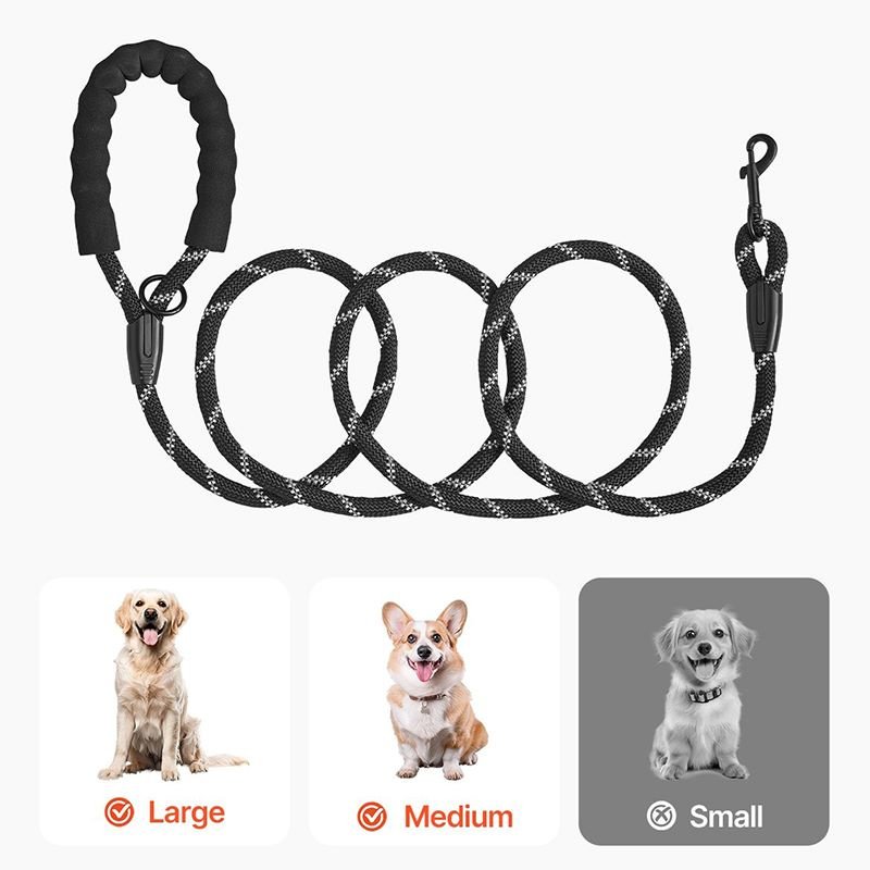 This durable dog leash features a soft foam handle that reduces friction and discomfort, offering excellent comfort and grip.