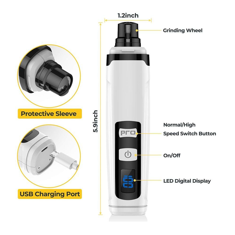 [Safe, Effective & Precise Trimming]This dog nail grinder uses an advanced Diamond Bit Grinder & Powerful Motors to deliver the safest, most comfortable pet claw grinding. Compared with manual dog nail clippers, our pet nail grinder will avoid over cutting nails or hurting your pet. Recommended by veterinarians and pet grooming professionals, painlessly and precisely trim your pet's nails anywhere.