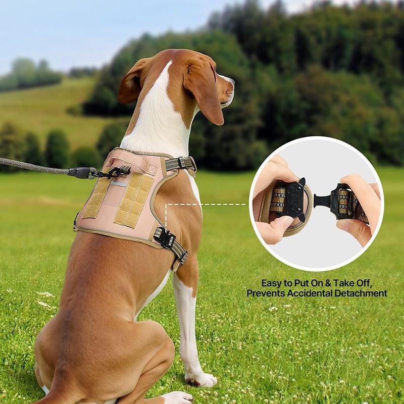 The dog harness is designed with reflective stitching.