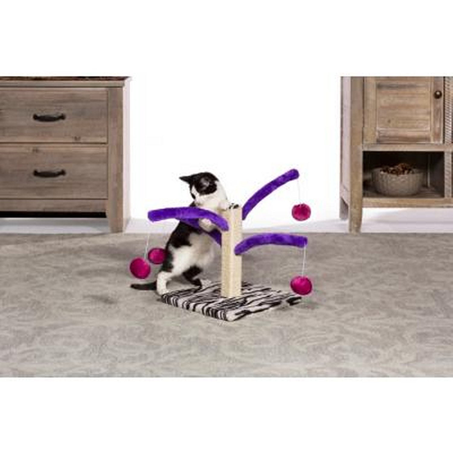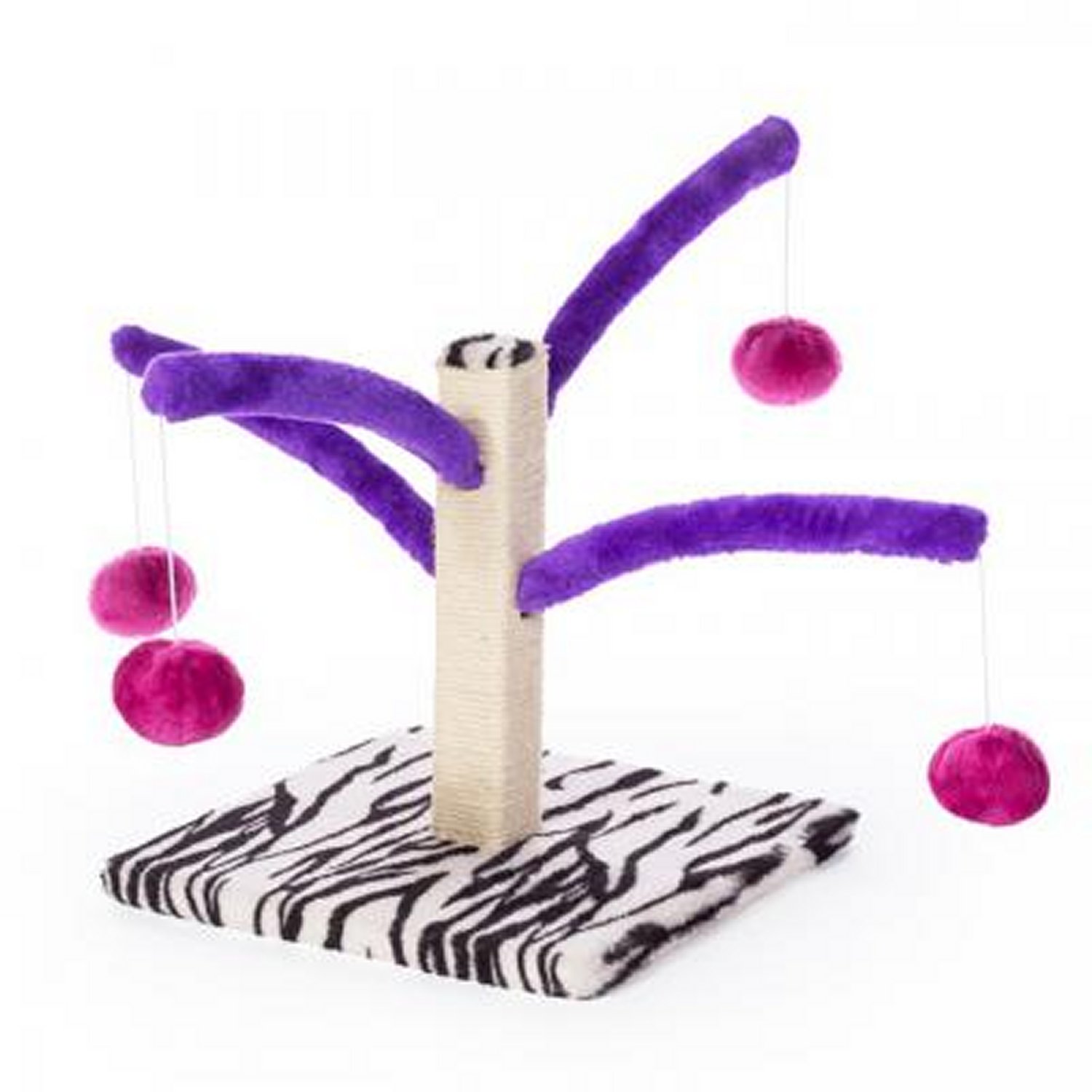 • Jute scratching post, four spring arms with plush toys